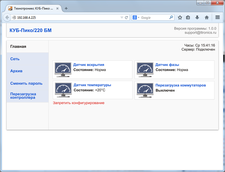 Рис. 2 WEB-интерфейс контроллера КУБ-Пико/220 БМ