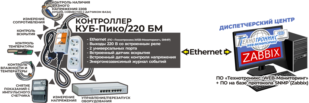 Рис. 1 Функциональные возможности контроллера КУБ-Пико/220 БМ